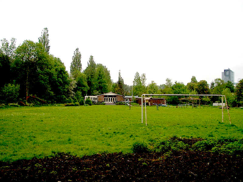 Ons sport- en speelterrein van 120x60 meter. Met voetbalveld, speelattributen en wigwamdorp