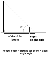 hoek grond-boom) er een hoek is van 45° (de hoek tussen jouw zichtlijn